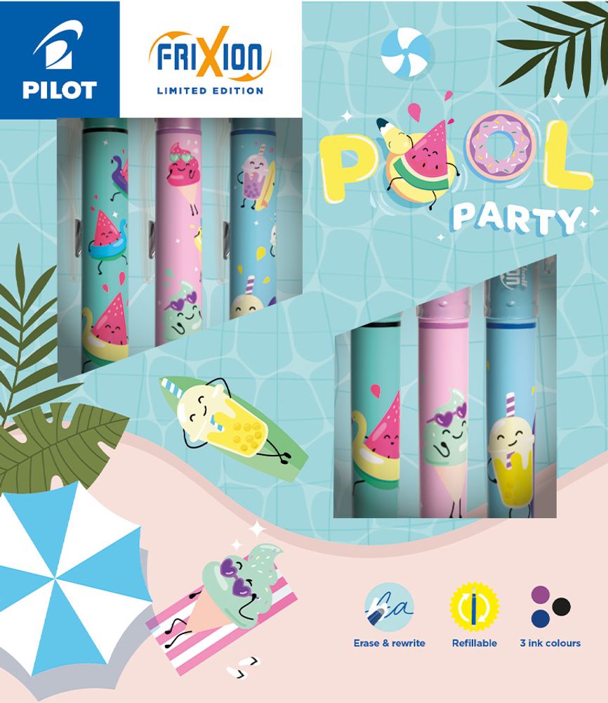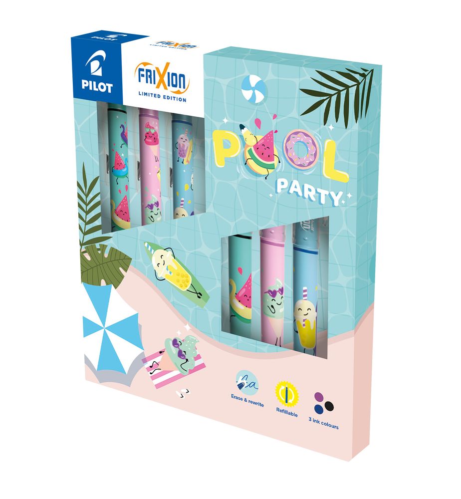 Set van 6 penne, uitgumbaar, hervulbaar en in drie inkt kleuren.