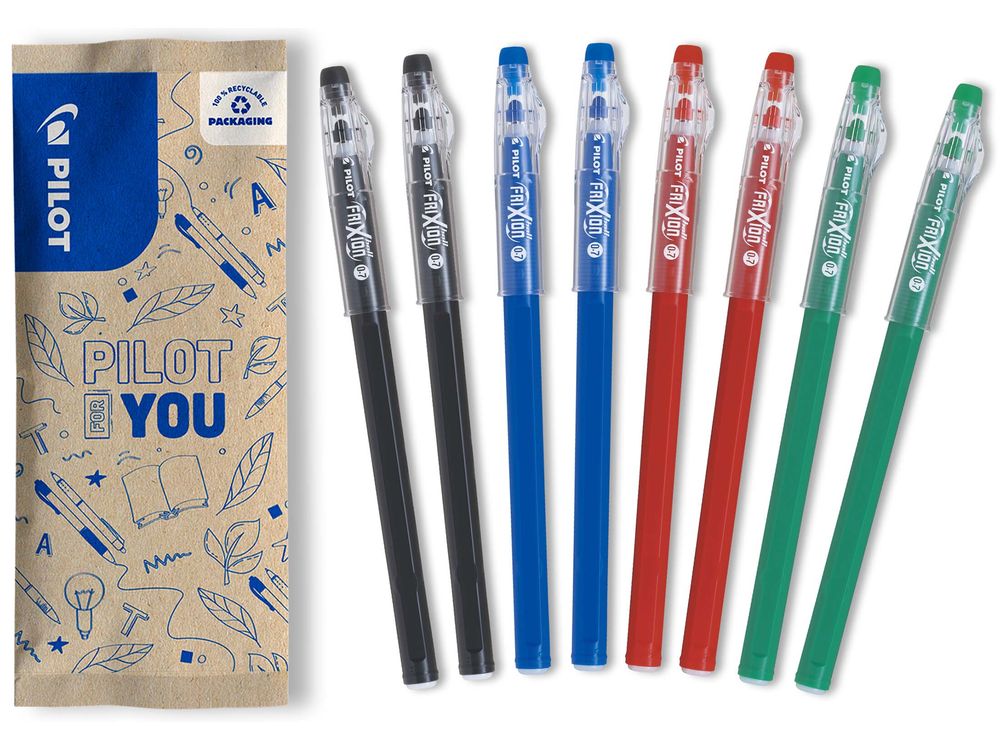 8 uitwisbare Pilot rollerpennen, 2 zwart, 2 rood, 2 blauw, 2 groen!