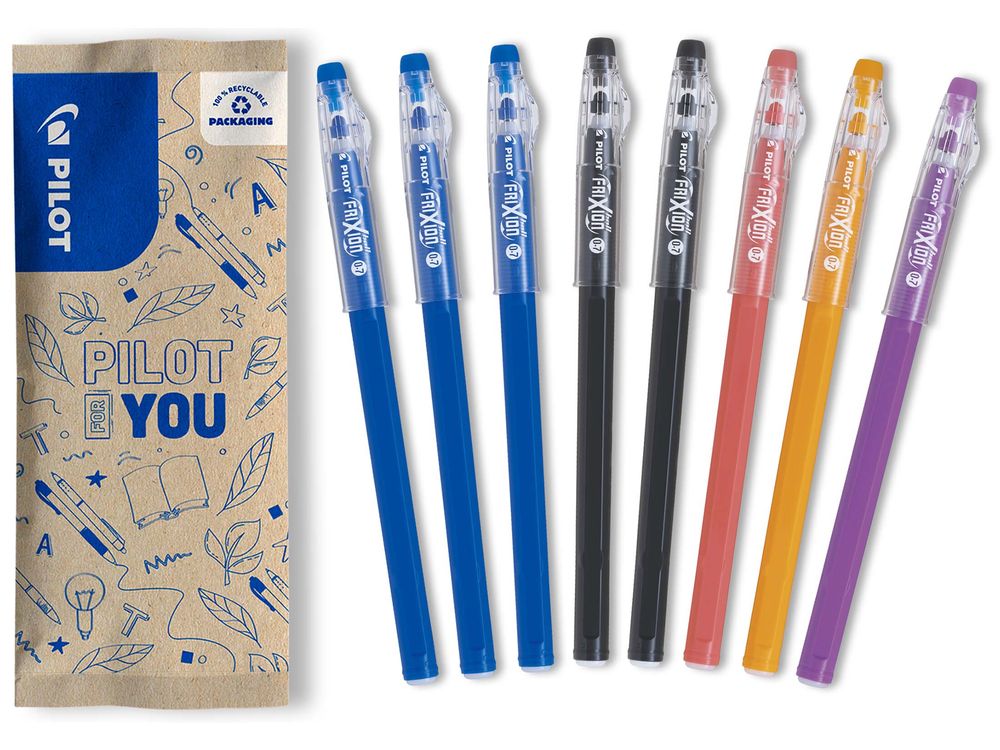 8 uitwisbare Pilot rollerpennen, 3 blauw, 2 zwart, 1 koraal, 1 oranje, 1 paars!
