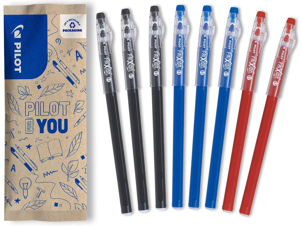 8 uitwisbare Pilot rollerpennen, 3 blauw, 3 zwart, 2 rood