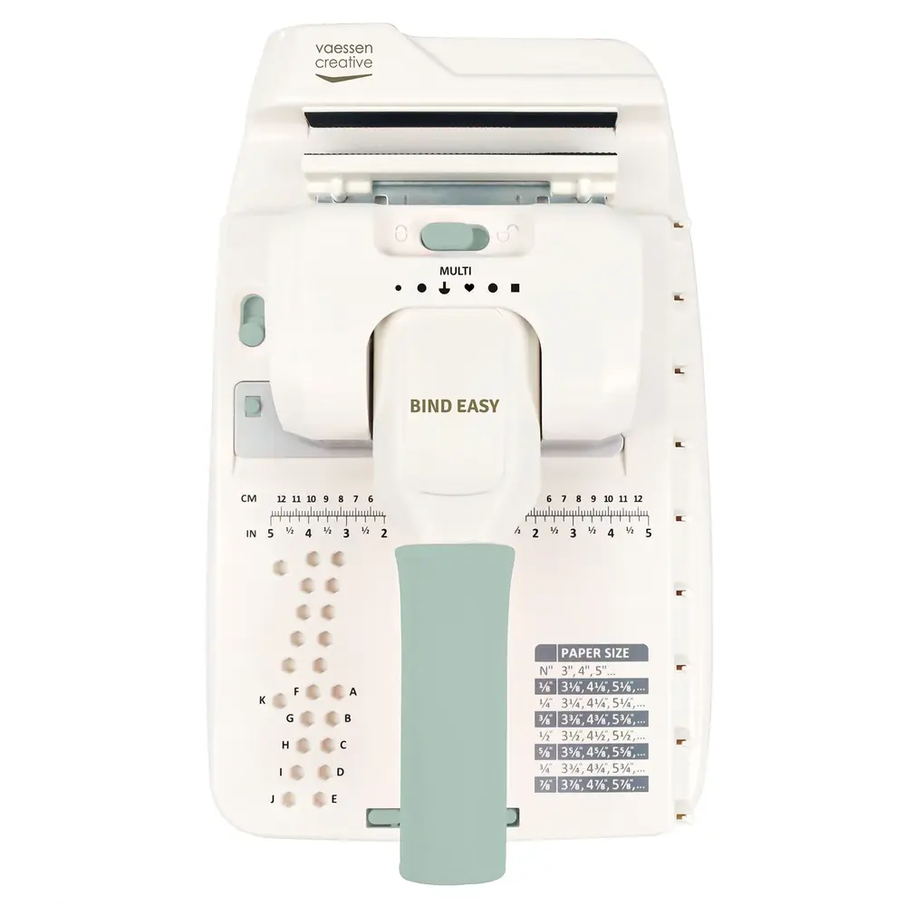 Ontdek de creatieve mogelijkheden van de Vaessen Creative Bind Easy, de alles-in-één inbindmachine voor wie zelf notitieboeken, journals, planners, receptenboeken of fotoalbums wil maken met een professionele afwerking. Dankzij de verwisselbare cartridges kies je moeiteloos tussen verschillende ponsstijlen en bindmethodes (draadbinding en discbinding), zodat elk project een persoonlijke uitstraling krijgt.