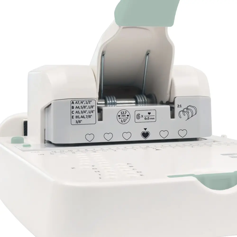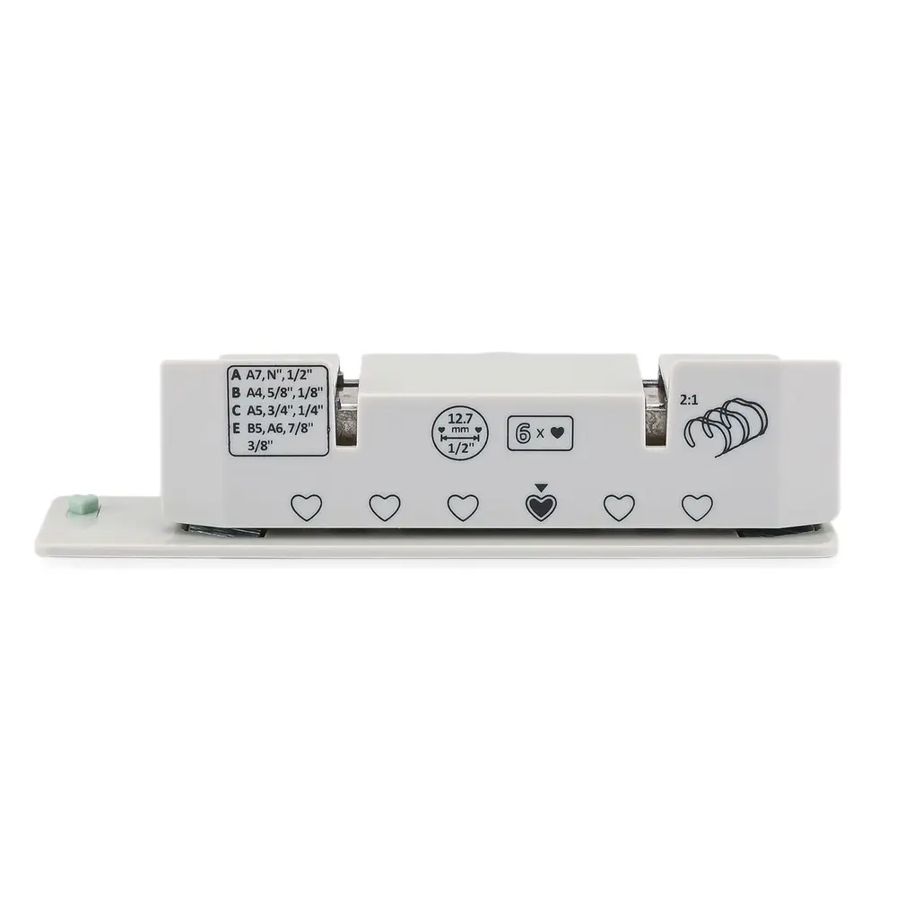 Deze cartridge is speciaal ontworpen voor gebruik in de Vaessen Creative Bind Easy inbindmachine (2021-400). Met deze cartridge maak je 8 hartvormige ponsgaten van 5 x 5 mm voor metalen bindruggen. Een ideale uitbreiding om je machine veelzijdiger te maken en nog meer creatieve mogelijkheden te ontdekken. Voeg een speels of stijlvol accent toe aan je notitieboeken, planners en creatieve projecten. Zo maak je altijd een boek dat past bij jouw stijl. Elke cartridge is eenvoudig te wisselen en ponst tot 10 vellen (80 g) tegelijk. De afstand tussen de gaatjes is 12,7 mm.