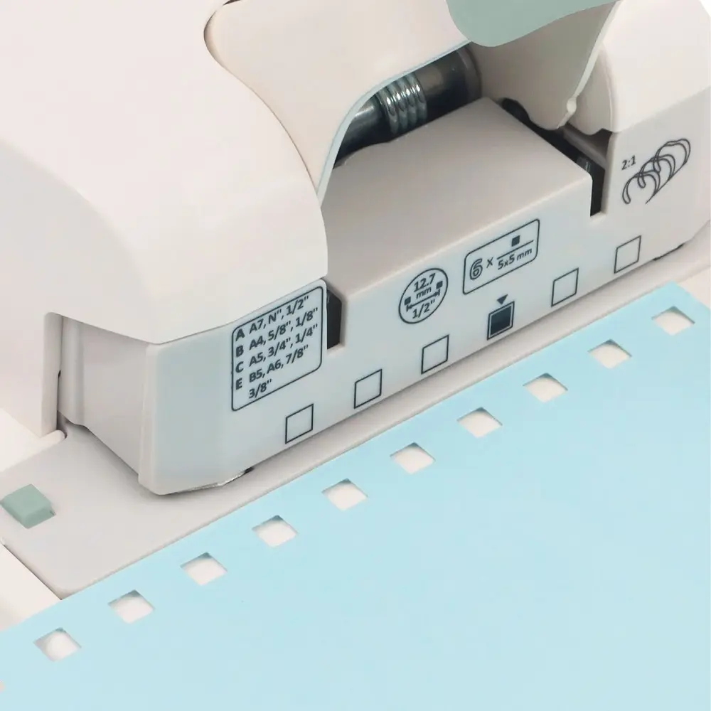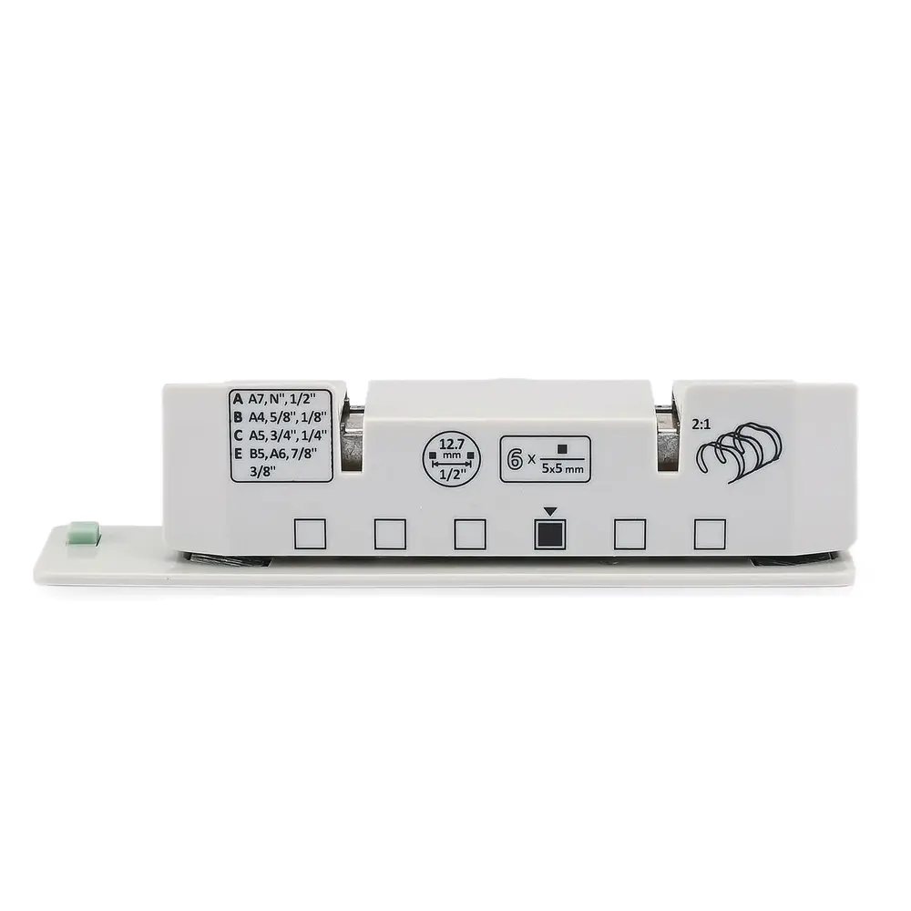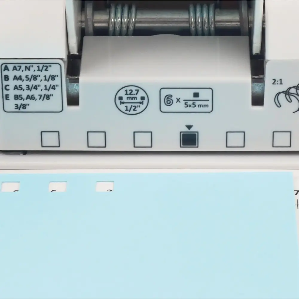 De Bind Easy inbindmachine (2021-400) ponst tot 10 vellen (80 g) tegelijk en is geschikt voor draadbinding met 2 of 3 gaten per inch (2:1 of 3:1) in verschillende maten, maar ook voor disc-binding. Afhankelijk van de gekozen bindrug of disc kun je documenten samenstellen van 20 tot circa 175 vellen. Met de verstelbare papiergeleider en de duidelijke maatverdeling in centimeters en inches werk je altijd nauwkeurig en perfect gecentreerd. Het compacte ontwerp, de vergrendelbare hendel en de geïntegreerde opvangbak maken de machine bovendien praktisch en gebruiksvriendelijk voor iedere creatieve maker, van beginner tot ervaren hobbyist.