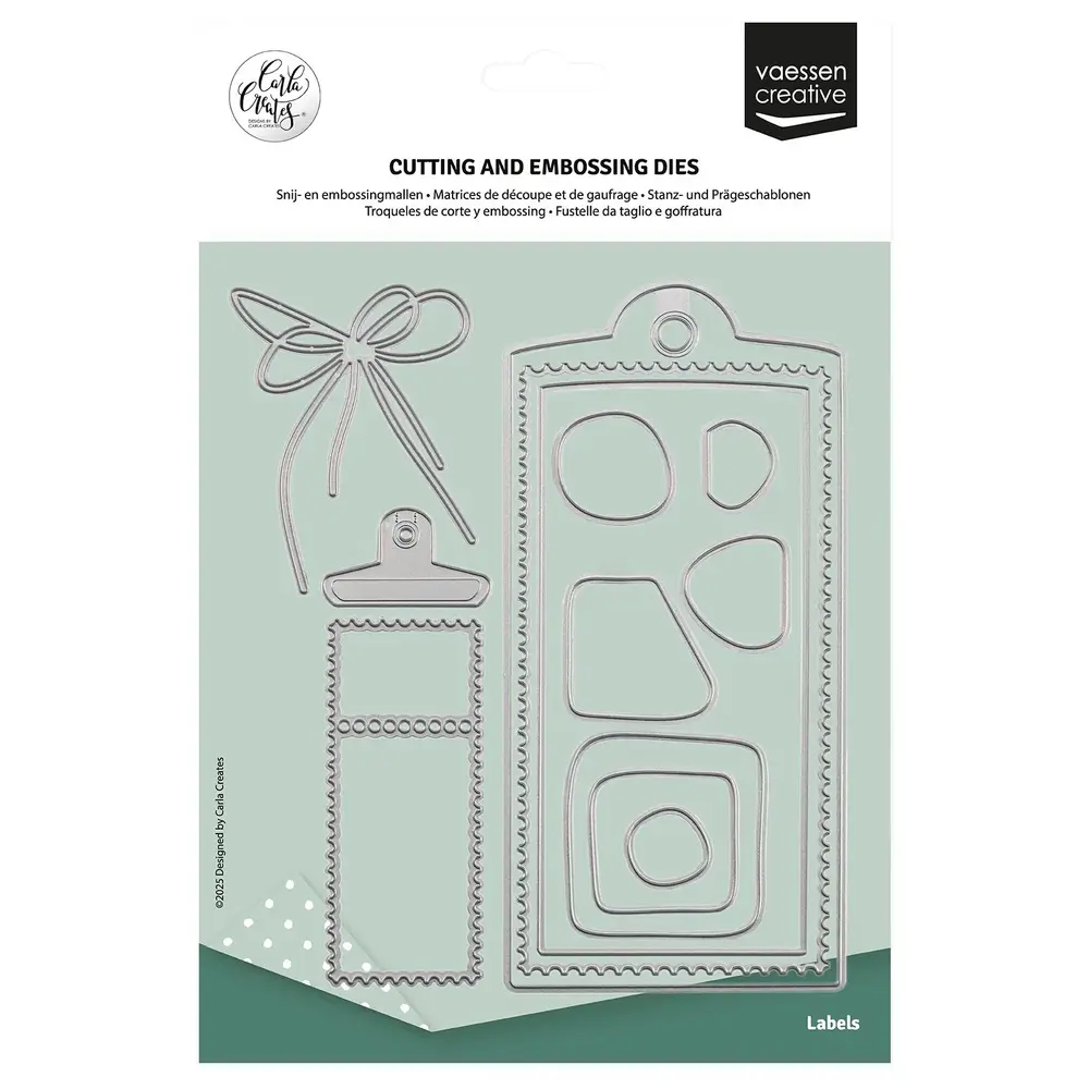 Vaessen Creative - Carla Creates - Snij- en Embossingmallen Label 13 stuks - CAR0201