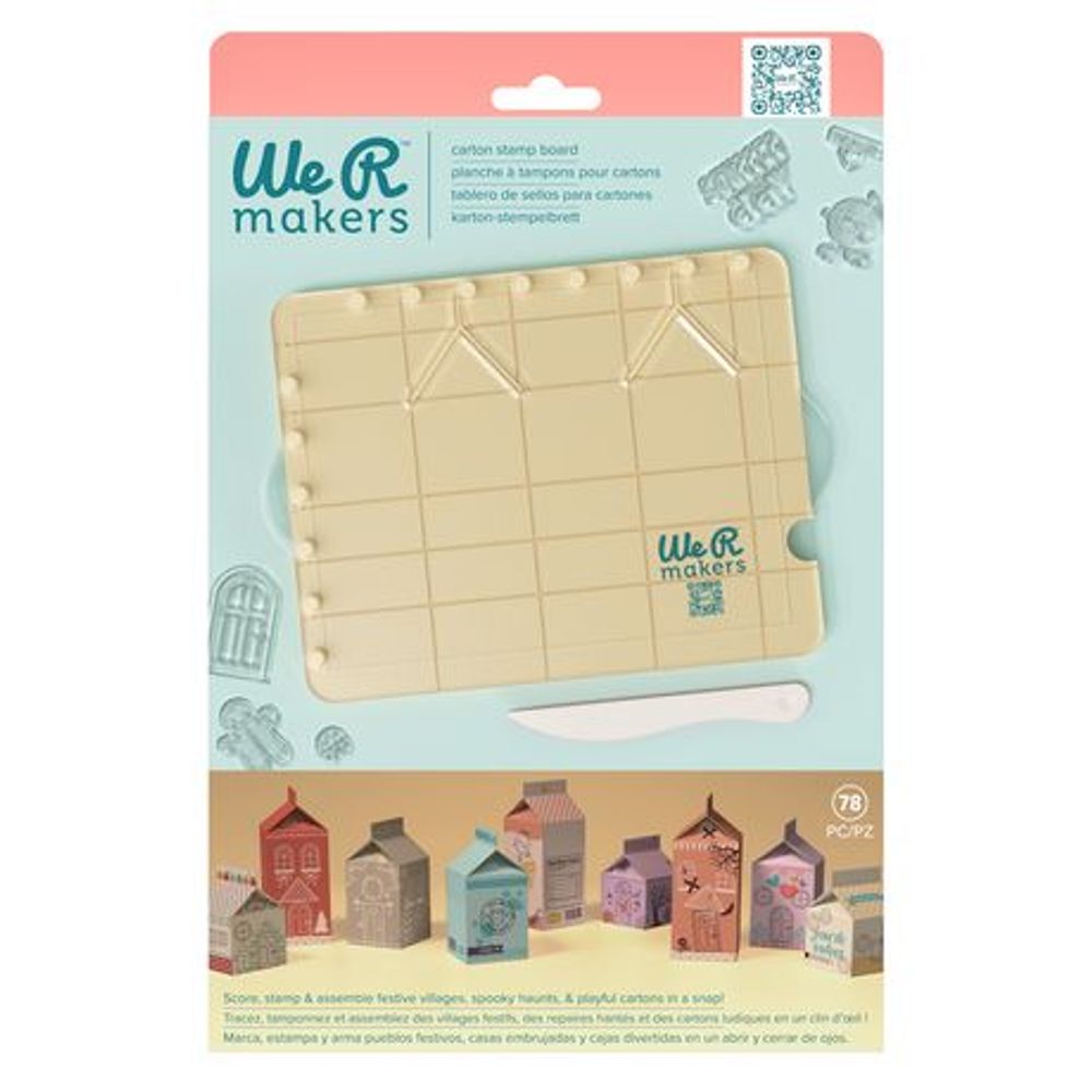 Geef papier persoonlijkheid! Met het We R Makers Carton Stamp Board kun je rillen, stempelen en gepersonaliseerde papieren dozen in elkaar zetten voor elke gelegenheid. Maak schattige dorpjes, snoepdoosjes of themadecoraties met je favoriete papier en de meegeleverde set van 75 stempels. Deze complete set bevat een stevige rilbasis, een transparante acryl stempelplaat en bijpassende stempels waarmee je dozen in verschillende formaten kunt ontwerpen, versieren en in elkaar zetten. Of je nu knutselt voor de feestdagen, feestjes, in de klas of gewoon voor de lol, met het Carton Stamp Board breng je je fantasie gemakkelijk tot leven - vouw voor vouw.