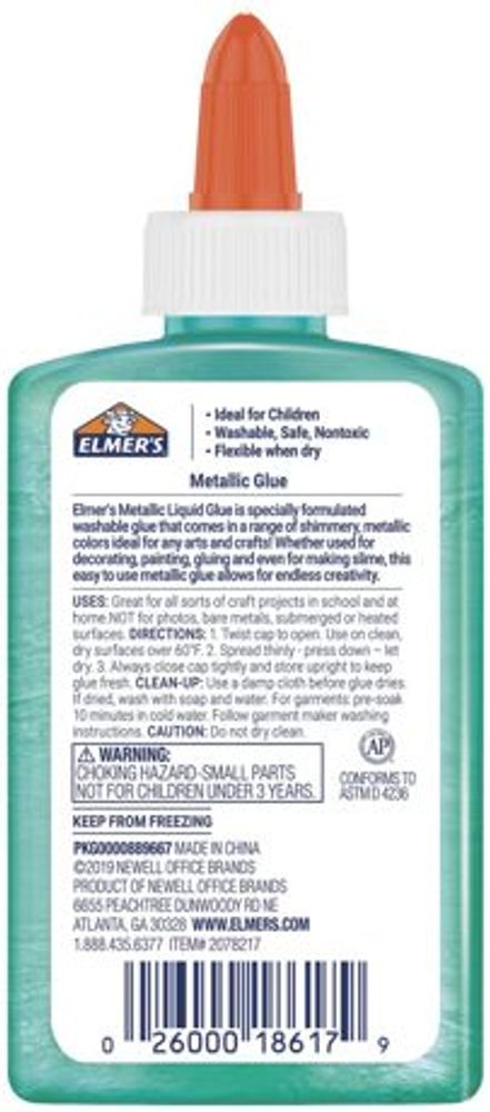 Verkrijgbaar in een reeks glinsterende, metallic kleuren, ideaal voor allerlei knutselprojecten. Werkt goed op printerpapier, knutselpapier, posterpapier, glitter en wattenschijfjes. Deze verpakking bevat één flesje lijm van 147 ml (5 fl oz). Niet geschikt voor kinderen jonger dan 3 jaar. Ook leuk voor het maken van slijm!
