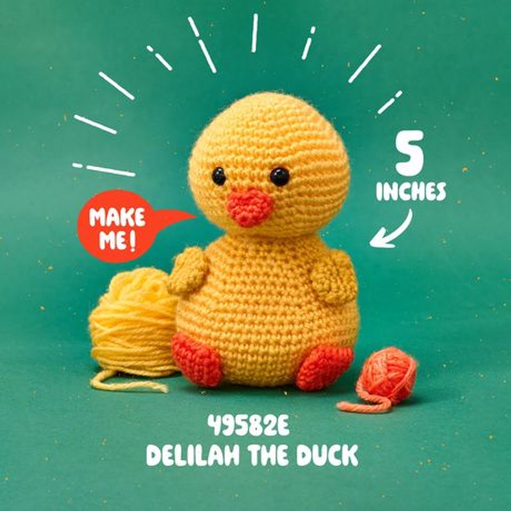 Complete set met garen, borduurdraad, vulling, plastic haaknaald, plastic naald, veiligheidsoogjes, steekmarkeerders en instructies. Het gehaakt project is 7.6x12.7x6.9 cm