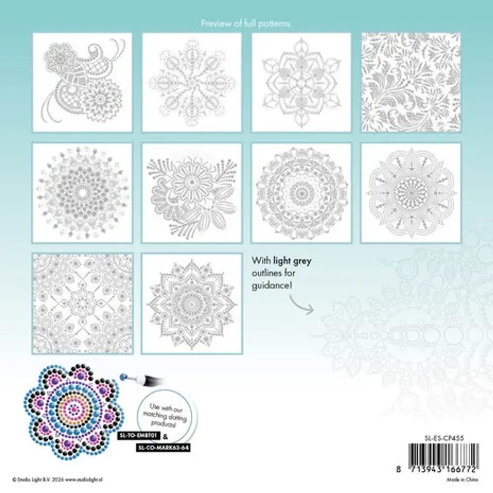 Essentials by Studio Light. Coloring Pages Dot Mandalas & Patterns. 203x203x5mm. 20 vel.