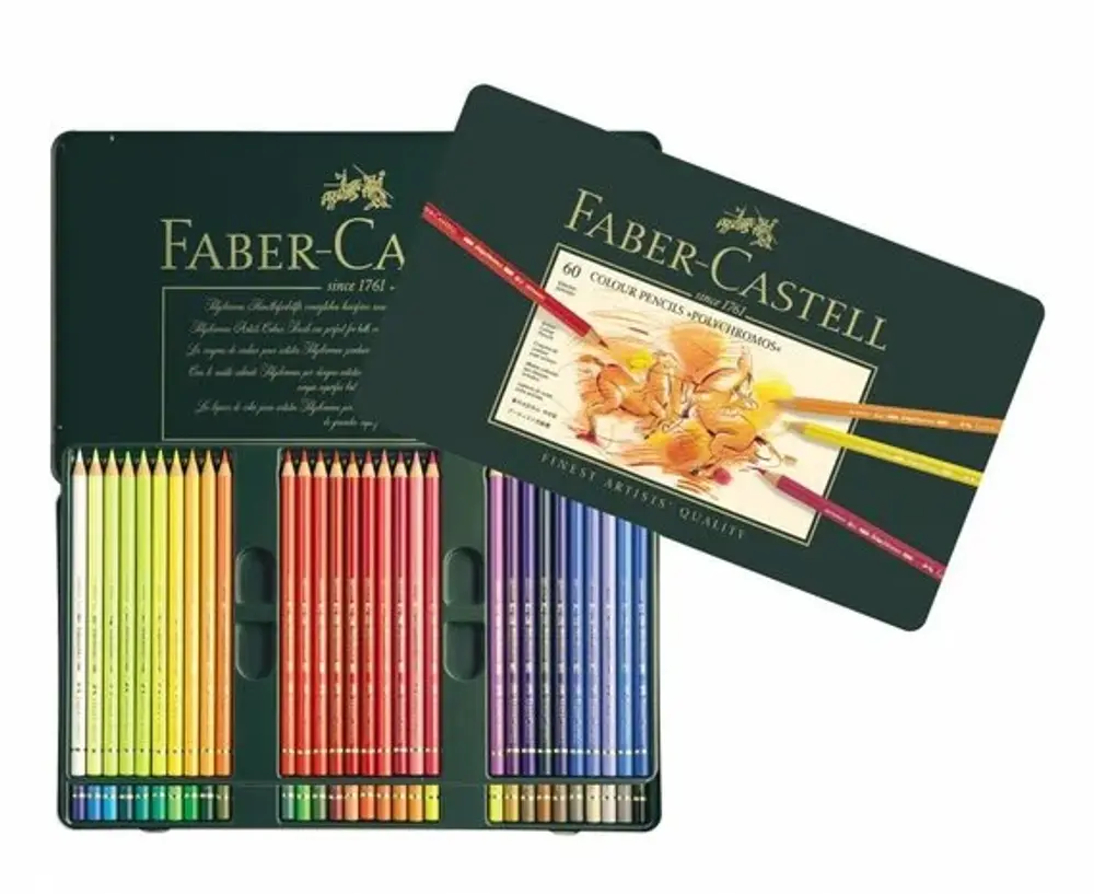 Kleurpotloden, 3,8 mm kerndikte in hout gevat, ronde uitvoering. Hoogwaardige pigmenten met voortreffelijke kleurkracht en lichtbestendigheid. Volledige kleurafgifte en soepel werkend. Wis- en watervast. Alleen met terpentine verwijderbaar. Houder gelakt in de kleur van het potlood. Etui à 60 st.