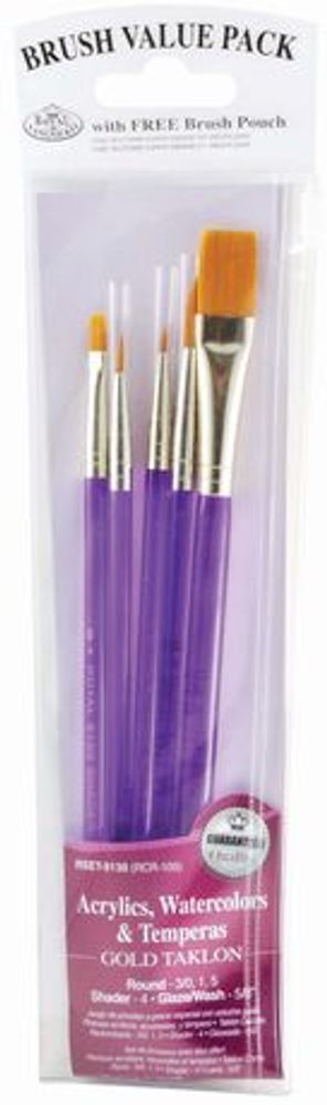 Royal & Langnickel - Kwastenset - Gold Taklon Value Pack Brush Set - Gold Taklon Acrylic Handle 5 stuks - RSET-9130