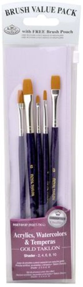 Royal & Langnickel - Kwastenset - Gold Taklon Value Pack Brush Set - Gold Taklon Shader 5 stuks - RSET-9137