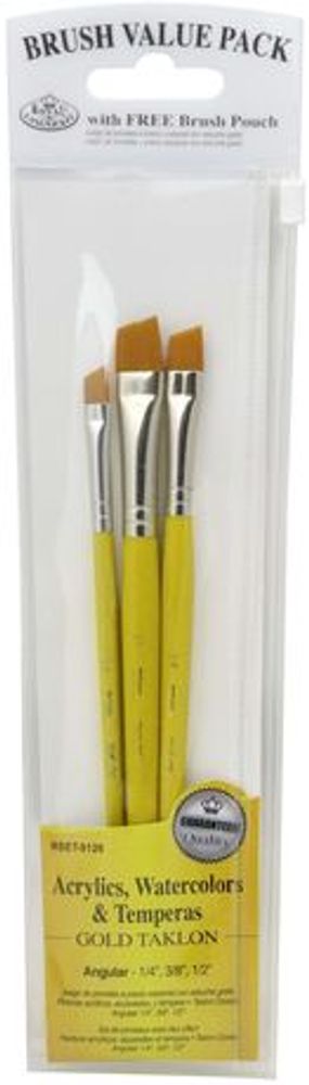 Royal & Langnickel - Kwastenset - Value Pack Brush Sets - Gold Taklon Angular 3 stuks - RSET-9126