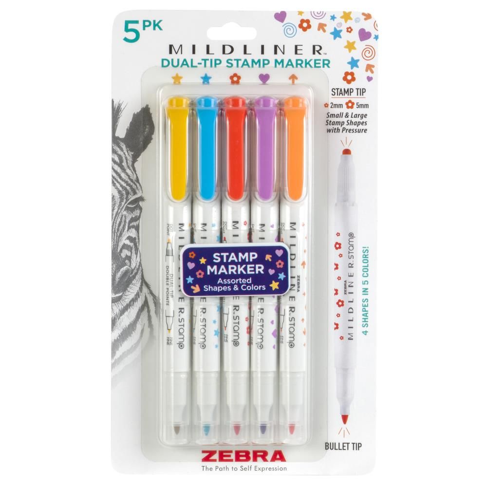 Aan de ene kant een bullet tip en aan de andere kant een stempel (2 tot 5 mm groot), elke kleur heeft eigen afbeelding. Handig voor het maken van lijstjes/taken.