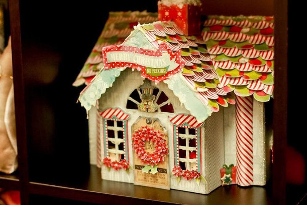 Bo Bunny november blog class challenge kit. In de kit zit al het materiaal om een decoratief kersthuisje te maken.