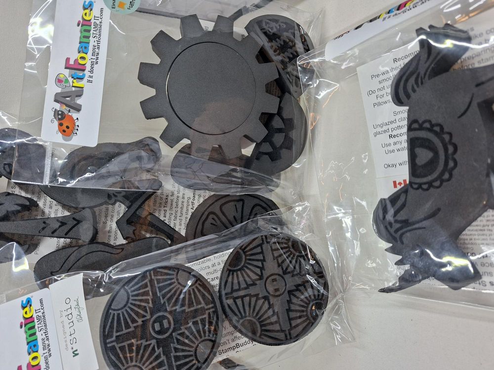 Set van verschillende art foamies. De afbeelding is een voorbeeldset, de inhoud kan per set verschillen. Foam stempels zijn makkelijk te gebruiken met inkt maar ook met acrylverf. Zeker ook leuk in gebruik met een gelplate.