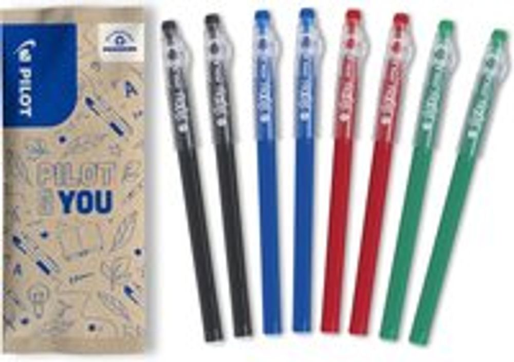 8 uitwisbare Pilot rollerpennen, 2 zwart, 2 rood, 2 blauw, 2 groen!