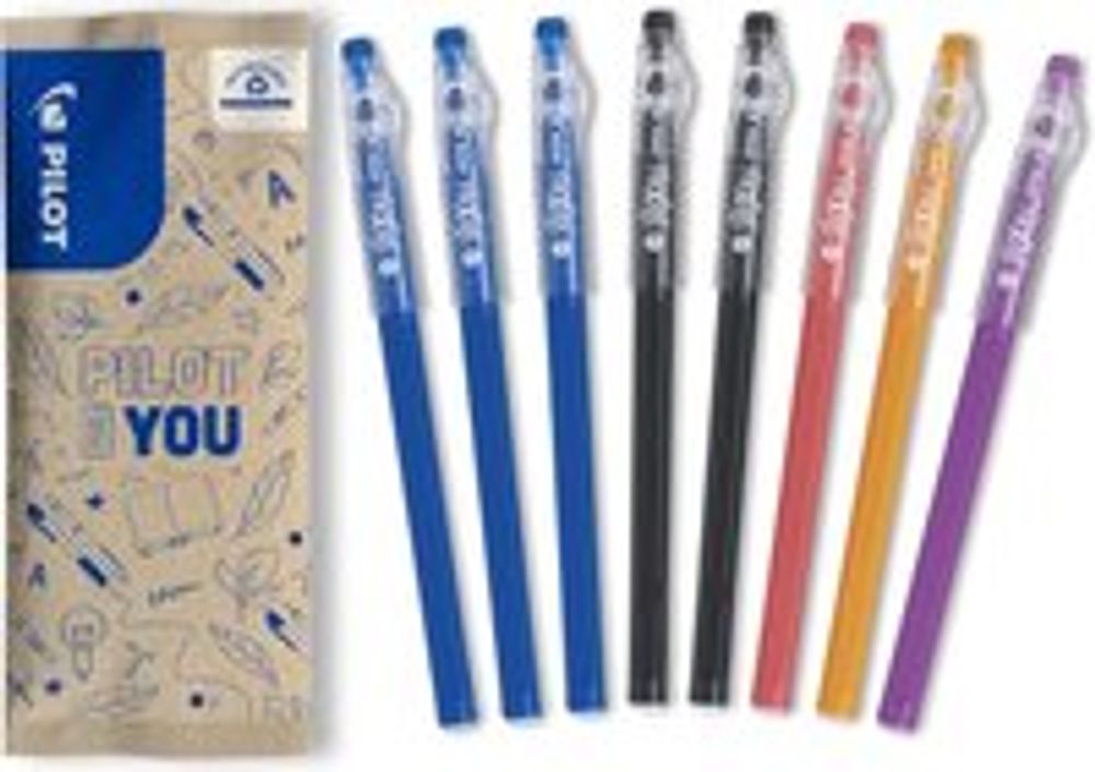 8 uitwisbare Pilot rollerpennen, 3 blauw, 2 zwart, 1 koraal, 1 oranje, 1 paars!