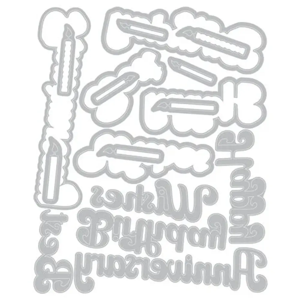 Sizzix - Thinlits (stansen) en stempels - 49 and Market - Birthday Wishes (18+7 stuks) - 666946