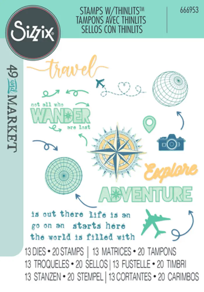 Sizzix - Thinlits (stansen) en stempels - 49 and Market - Wanderlust Explorer (13+20 stuks) - 666953