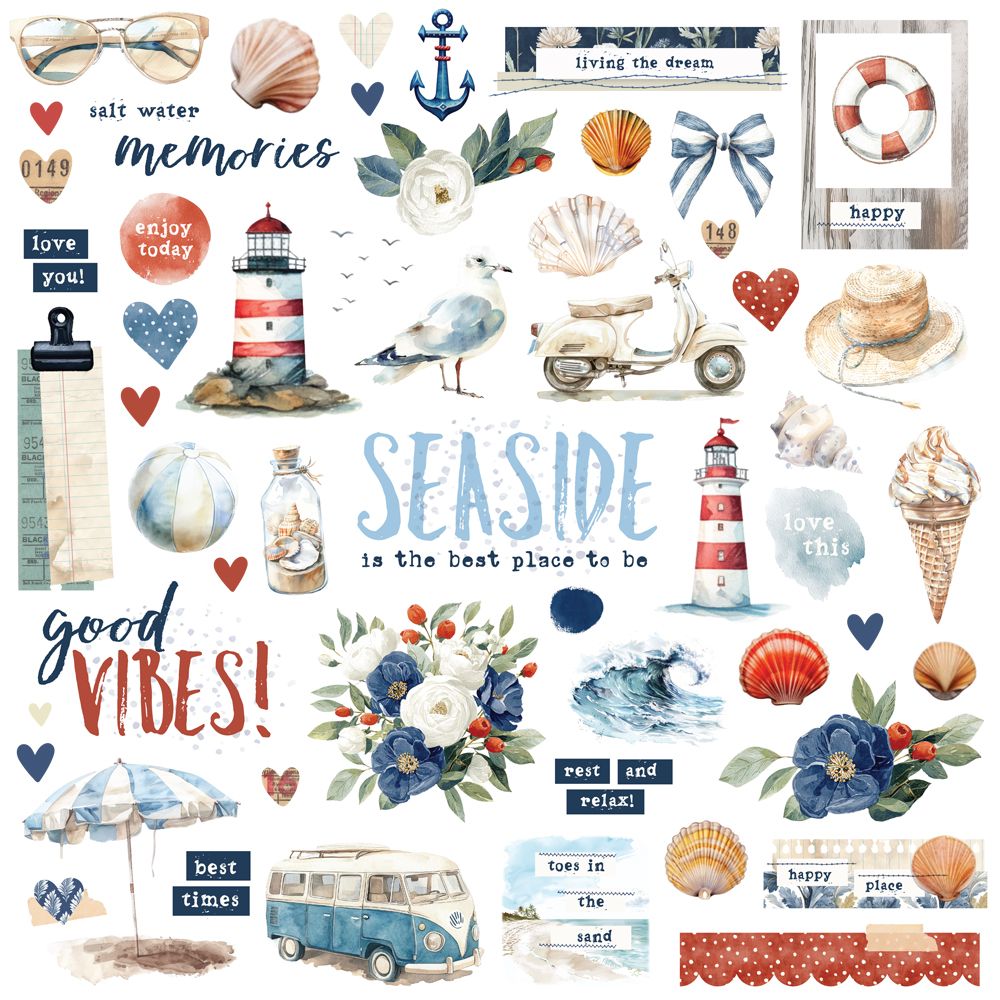 Vintage Sand & Sea - Chipboard Stickers - 26925